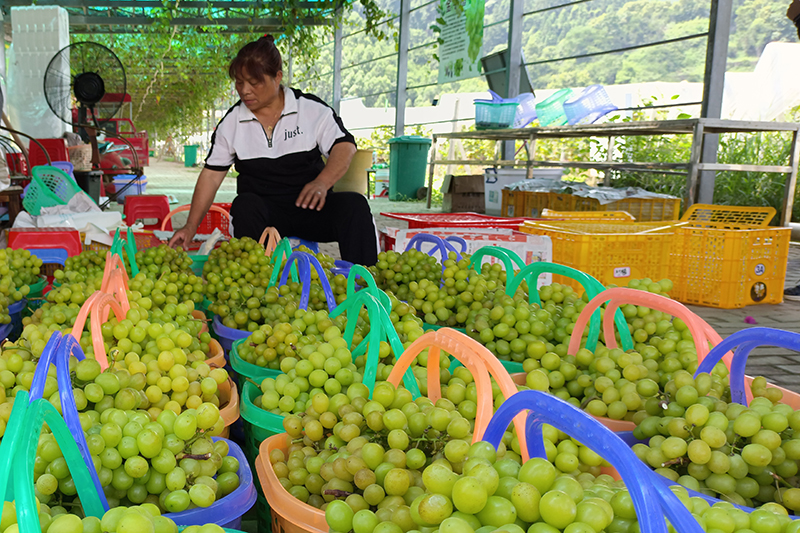 “今年的葡萄收成有7萬斤以上,市場價格每斤15元到23元,主要銷往廣東、湖南等地?!惫鹕态F代農業示范基地負責人蔣女士說。