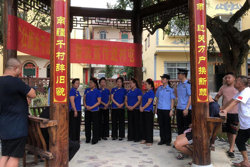 圖為卡鳳村女子山歌隊正在進行山歌傳唱法治宣講。