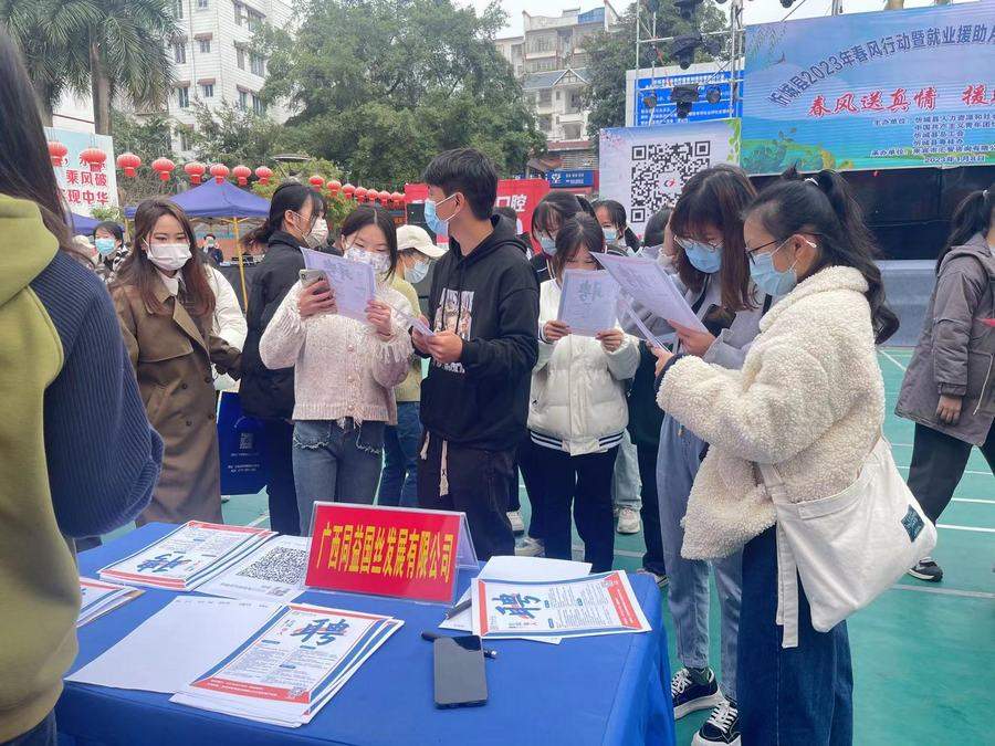 園區企業在忻城縣2023年春風行動暨就業援助月粵桂協作專場招聘會中招聘員工。