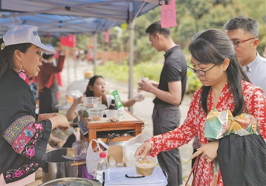 游客與當地瑤族同胞互敬美酒、互致祝福。