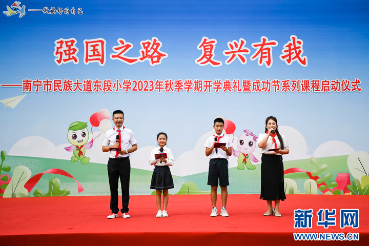 8月28日,廣西南寧市民族大道東段小學2023年秋季學期開學典禮暨成功節系列課程啟動儀式舉行。