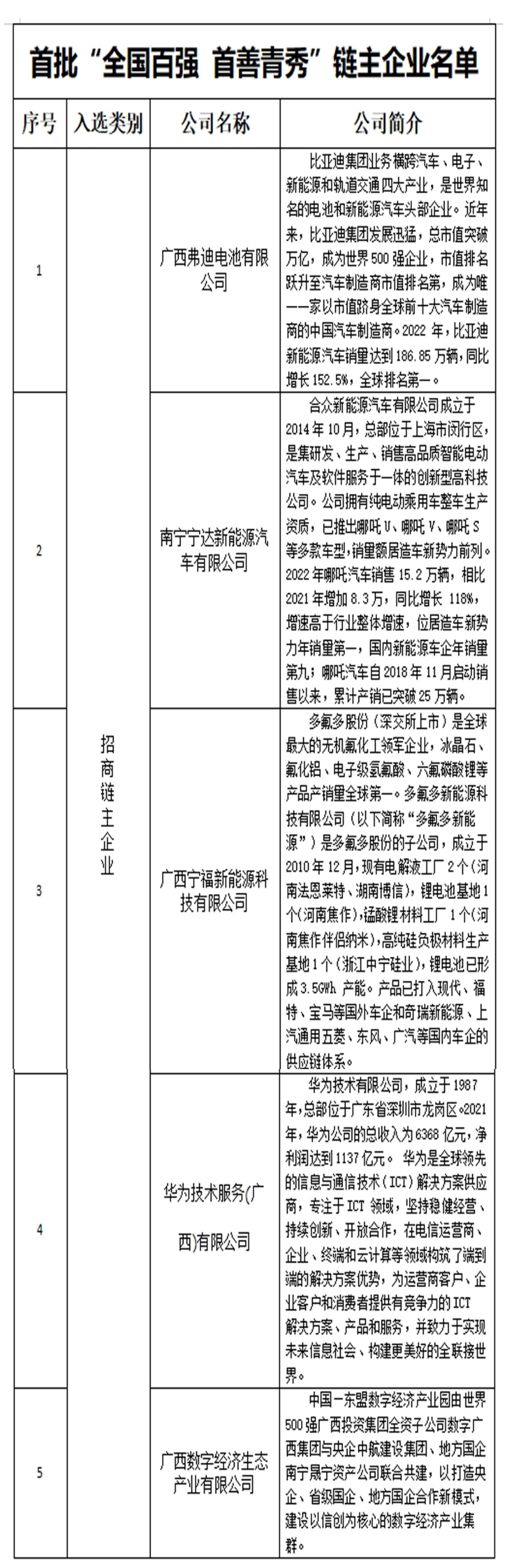 為充分調動更廣泛的社會力量支持參與招商工作,推動青秀區招商引資實現新突破、取得新成效,青秀區計劃禮聘在相關行業、領域擁有一定人脈、資源的個人和社會組織擔任青秀招商大使及鏈主企業。評選出符合青秀區開展招商工作要求的招商大使9位,推進強鏈補鏈延鏈工作要求的招商鏈主企業5家,具體名單如下。