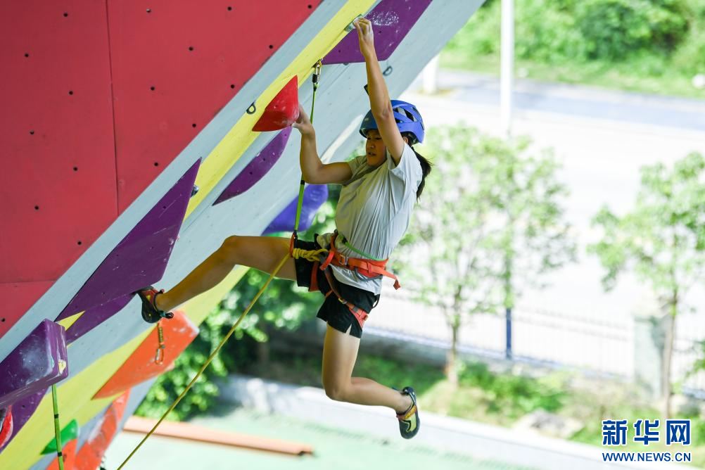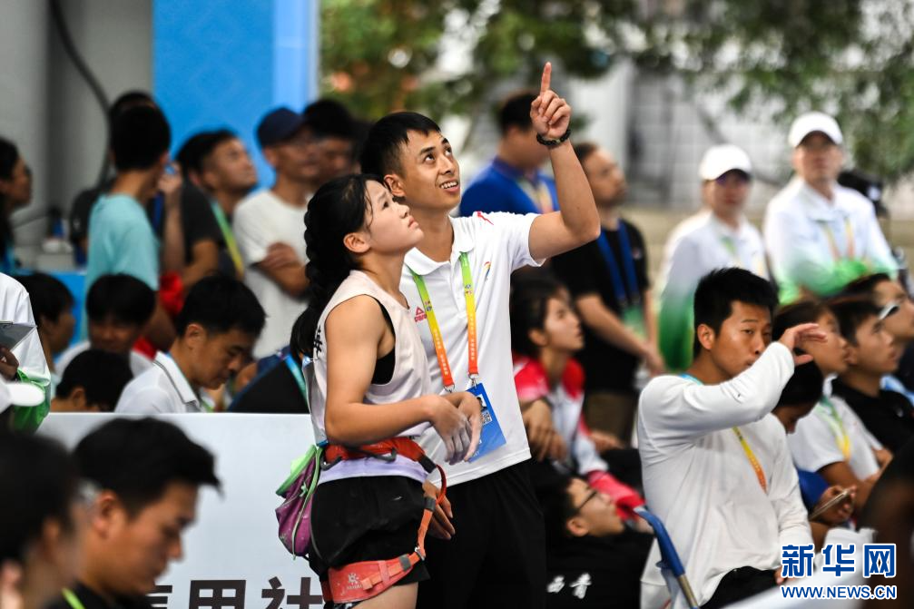 8月20日,在廣西樂業縣,李彥郯(左一)在參加第一屆全國學生(青年)運動會攀巖項目預賽前集訓。