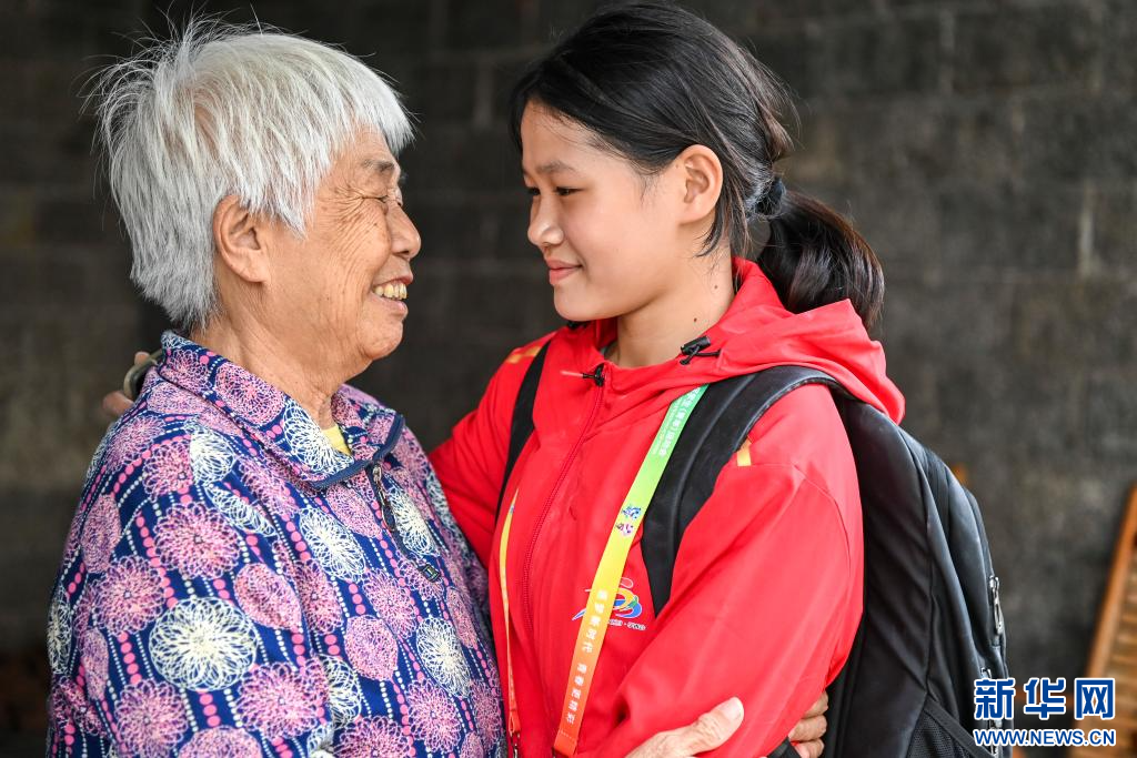 11月10日,在廣西馬山縣古零鎮,奶奶擁抱剛剛結束比賽的李彥郯(右)。