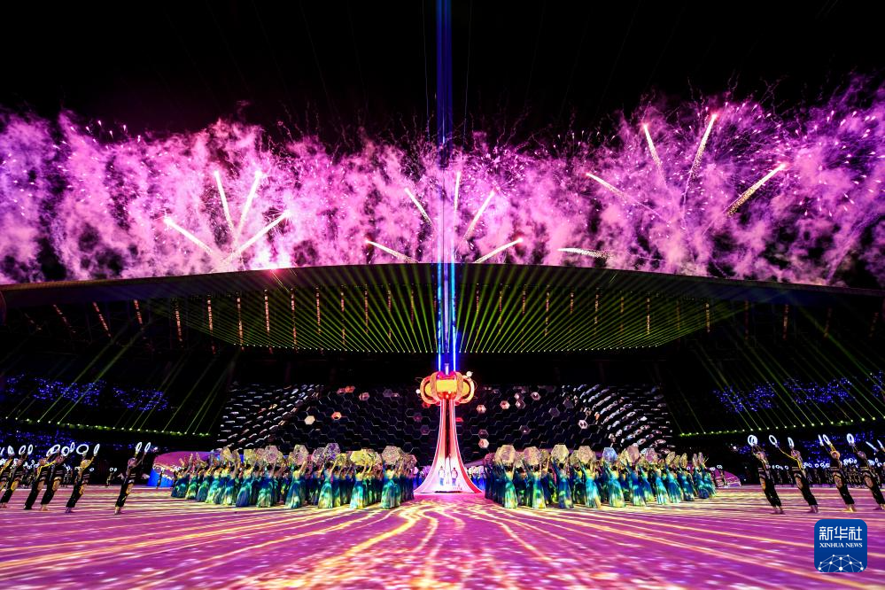 11月5日,在廣西體育中心體育場,第一屆全國學生(青年)運動會主火炬點燃。新華社記者 曹祎銘 攝