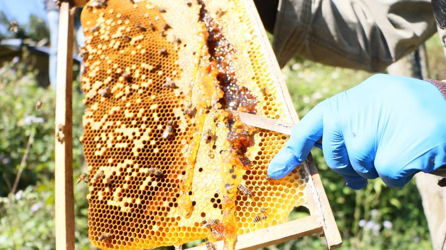 眼下,正是冬蜜采收的好時節,在廣西河池市南丹縣八圩瑤族鄉老圩場村蜜蜂養殖場,一個個蜂箱錯落有致地鑲嵌在山野里,成群的蜜蜂來回穿梭飛舞,忙著釀制獨有的甜蜜。