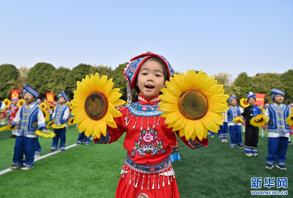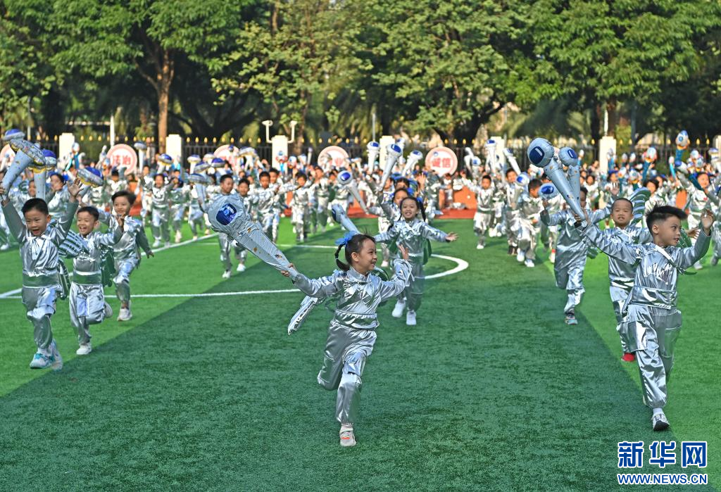 當日,廣西南寧市濱湖路小學舉行主題為“逐夢新時代 健體向未來”的體育文化節。開幕式上,孩子們表演民族歌舞,跳腰鼓舞,展示陽光運動團體操,共度歡樂時光。