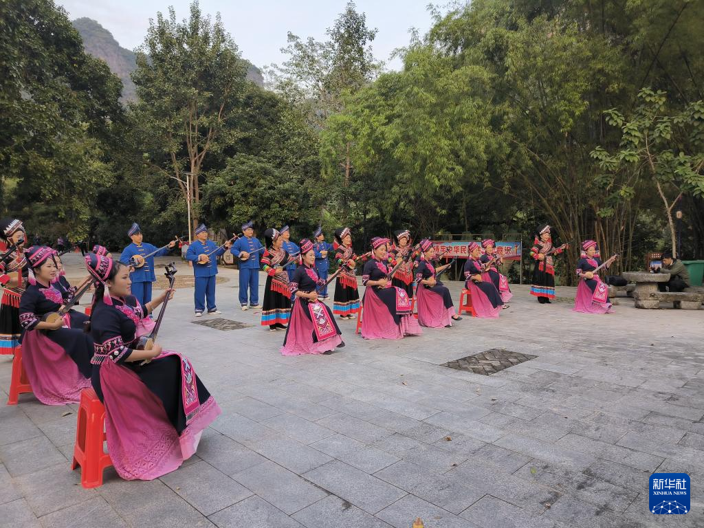 廣西崇左市寧明縣城中鎮耀達村村民在進行民族風情表演。新華社記者 郭軼凡 攝