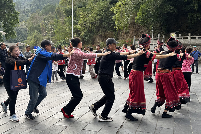 1月8日,廣西憑祥市友誼關景區熱鬧歡騰,當地群眾載歌載舞,歡迎東北“老鐵”到“南疆國門”友誼關旅游。