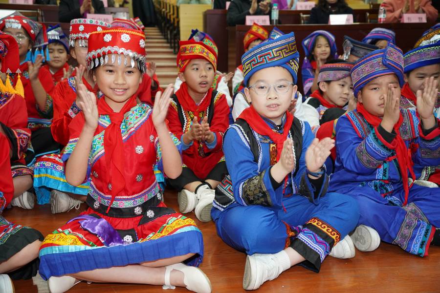 “進校園推進山歌傳習工作,是由自治縣政協文學藝術創作委員工作室根據委員提交的提案《關于在全縣廣泛開展廣西山歌傳習基地創建活動的建議》內容,聯合學校開展的?!贝蠡f副主席鄧寶艷介紹,大化政協注重組織委員聯合中小學校堅持面向全體學生普及與推廣中華優秀傳統文化,將山歌傳承融入辦學思想、校園文化、學科教學中,編寫壯、瑤等民族特色山歌入教材,組建劉三姐山歌隊、山歌童聲合唱團,著力培養眾多山歌傳唱人才,迄今已有 360 名學生獲得“劉三姐小傳人”稱號。(韋立輝 韓篤)