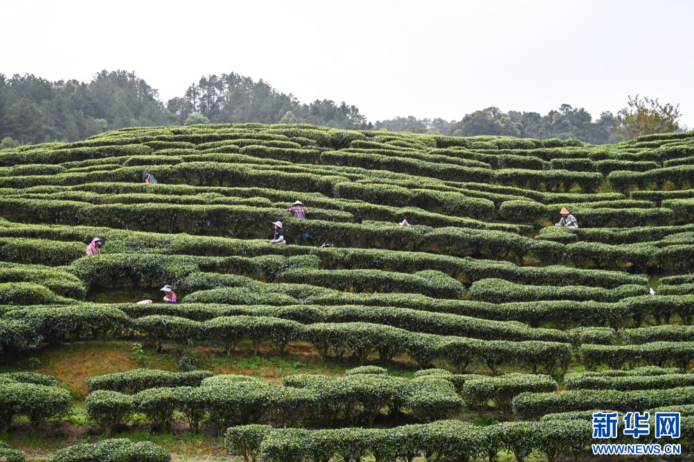 3月20日,茶農在廣西昭平縣一處茶園采摘春茶。