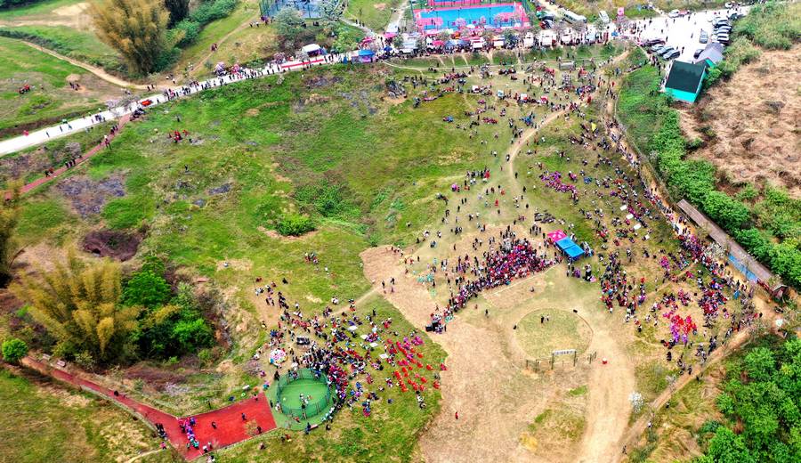 泗水旋歌地,孟儀時代春!3月30日,由河池市委網信辦、河池市融媒體中心主辦的主題為“唱壯美廣西 頌六新河池”的河池網紅歌圩暨東蘭縣泗孟鄉第三屆歌坡節在泗孟體育公園精彩舉行,活動吸引來自全市各縣(區)的網絡達人及山歌愛好者和游客逾萬人參加。