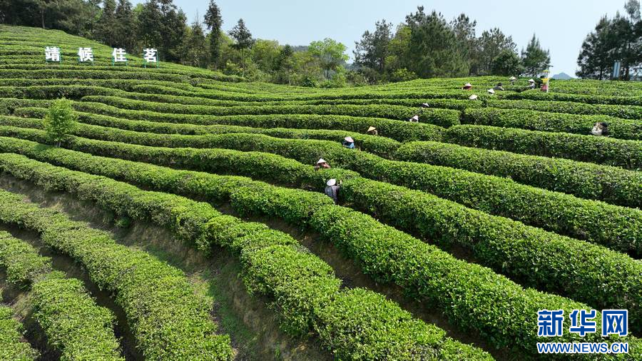 在樂村高山生態茶園里,茶農穿梭其中忙采茶。羅俏攝