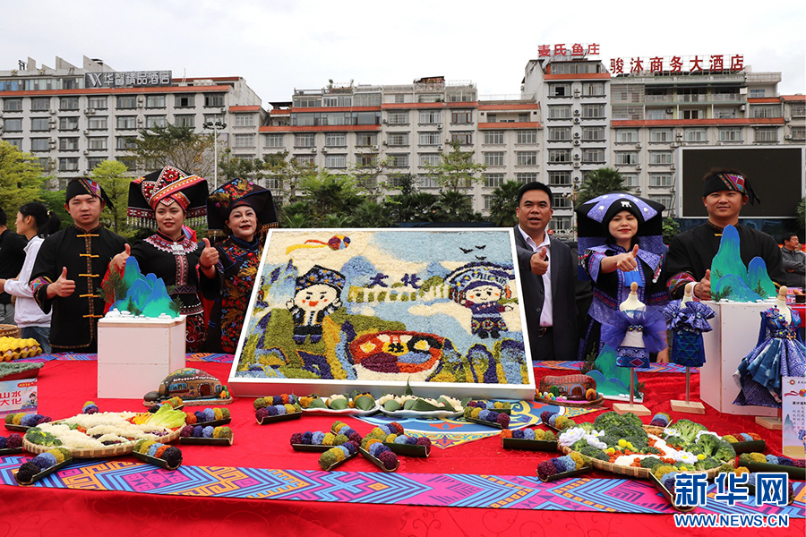 近日,廣西大化瑤族自治縣舉行“糯文化 看大化”美食展示活動,心靈手巧的瑤鄉群眾發揮想象力、創造力,將“五色糯米飯”擺出各式各樣的造型圖案,一份份充滿民族特色兼具創新時尚的五色“糯食”作品,吸引眾多市民、游客駐足觀賞、品嘗。