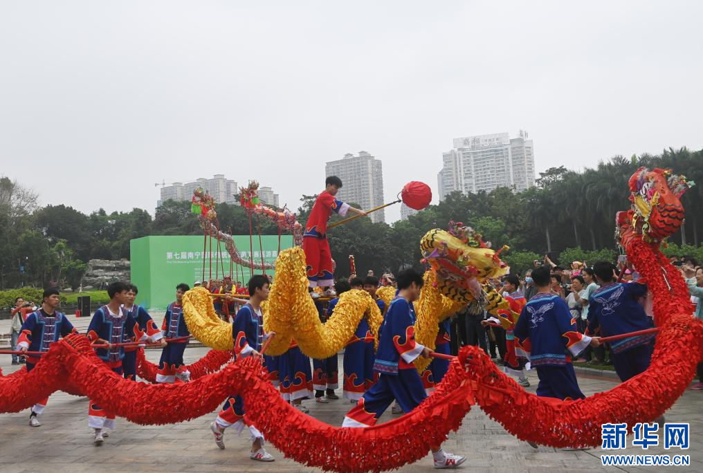 當日,第七屆南寧國際傳統舞龍邀請賽巡游嘉年華在南寧南湖公園舉行,來自國內外的22支舞龍隊開展5公里巡游。該活動是今年廣西“三月三”系列慶?;顒又?。
