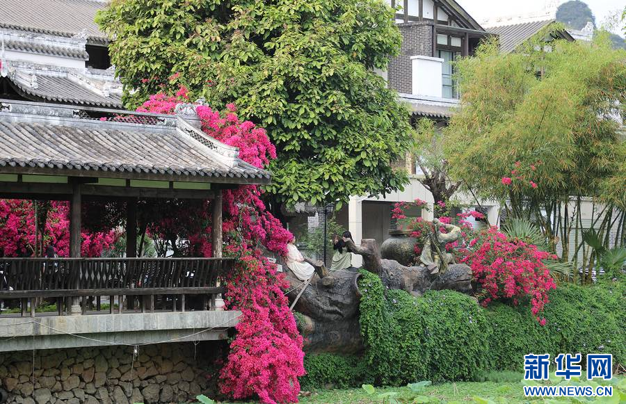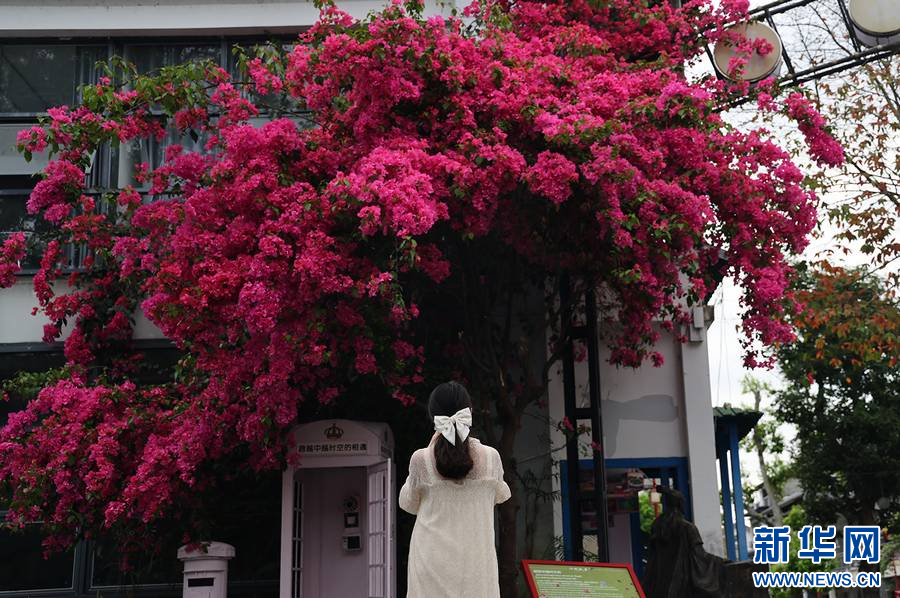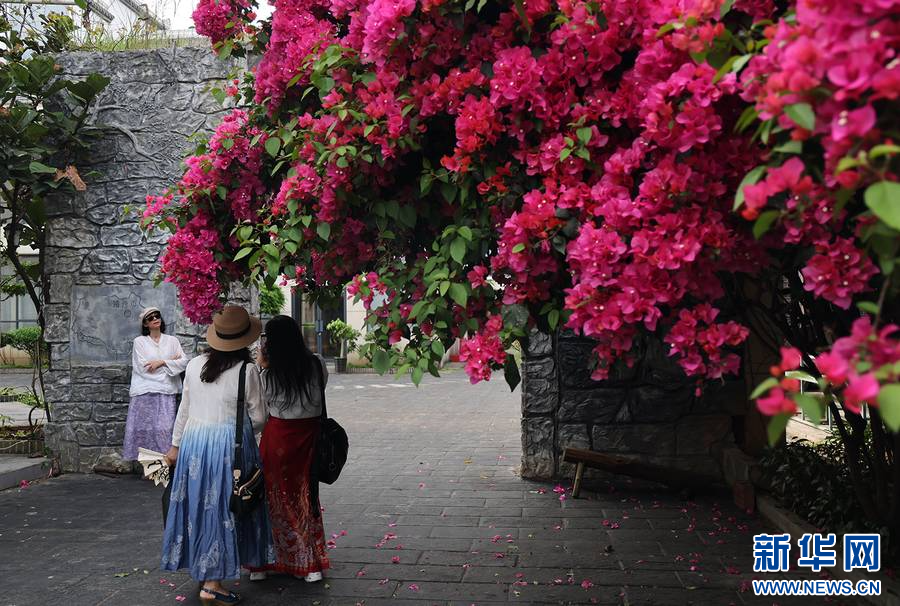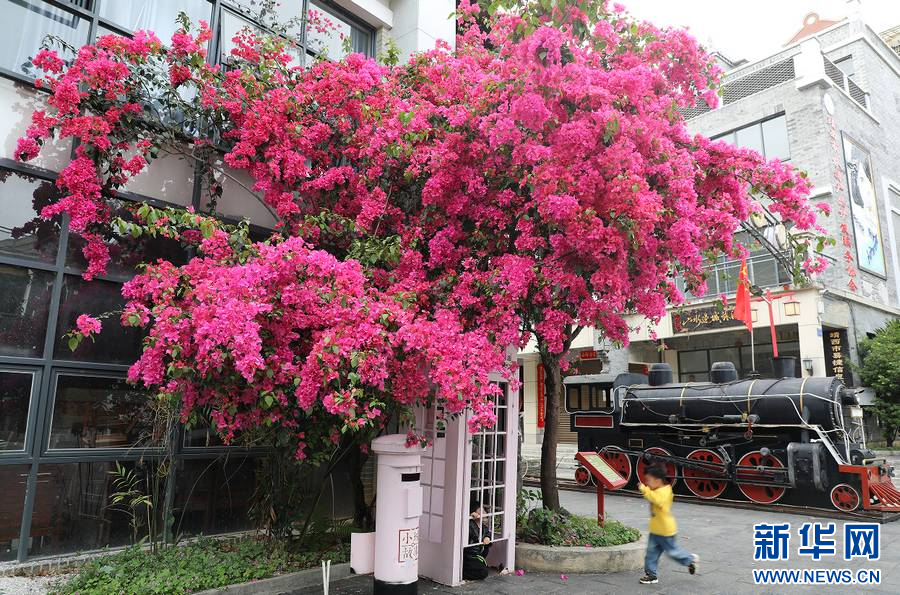 近日,隨著氣溫回升,廣西靖西市的三角梅進入盛放期,大街小巷的三角梅競相綻放,美麗春景吸引游客前來“打卡”拍照。