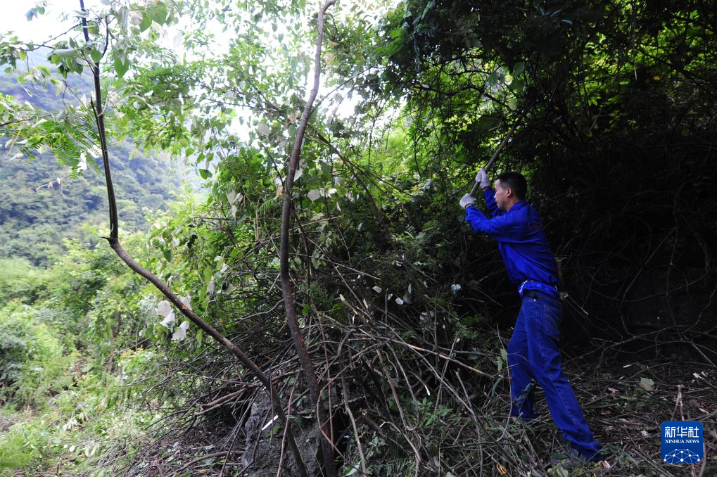 村民龍飛聯在山上清除雜物,以便開辟村里的道路 (2013年7月23日攝)。