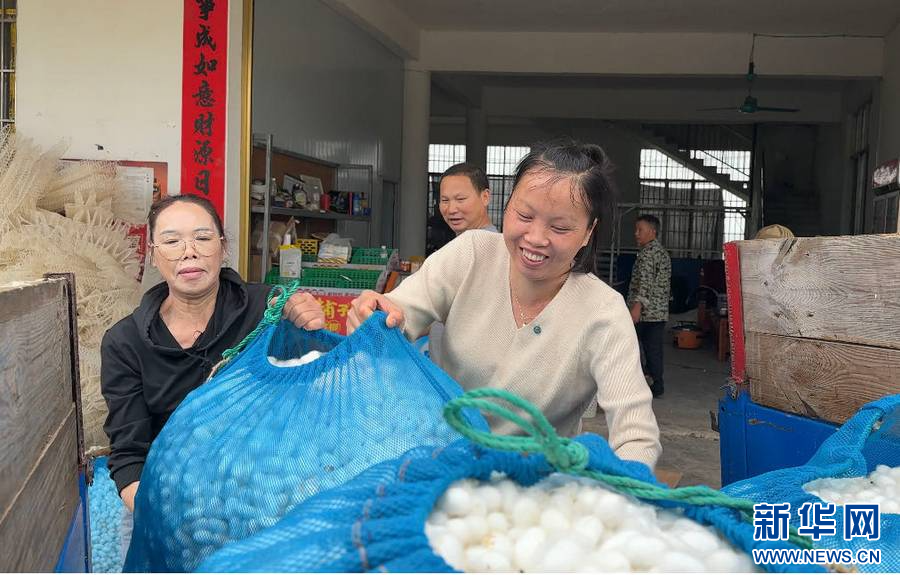 時下,廣西來賓市忻城縣紅渡鎮的蠶農又迎來了收獲季,白花花的蠶繭已經成為蠶農發家致富的“黃金絲”。