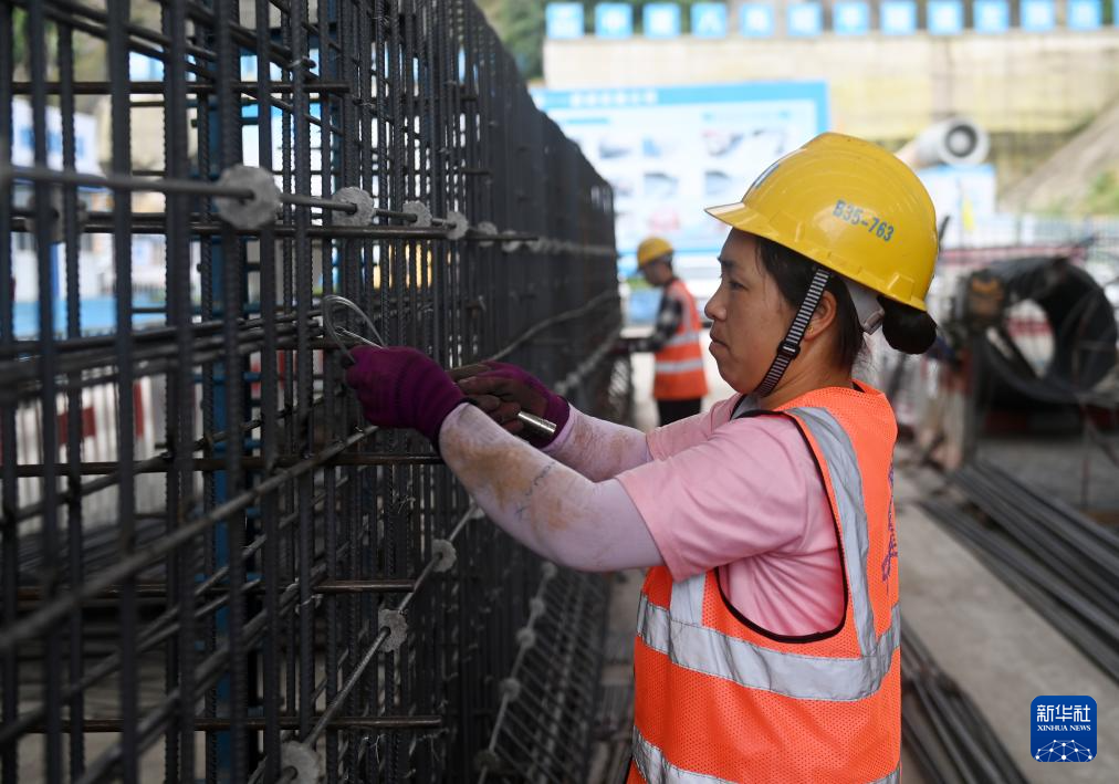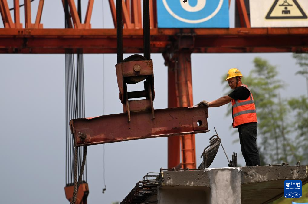 4月25日,工人在廣西昭平縣境內的蒼昭高速公路建設現場施工。