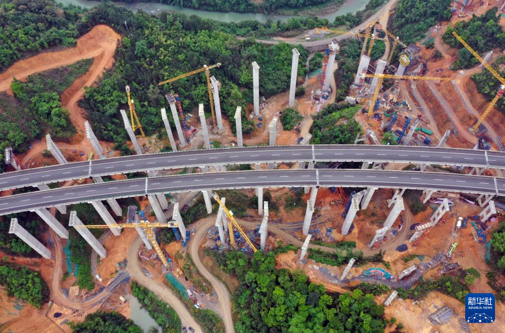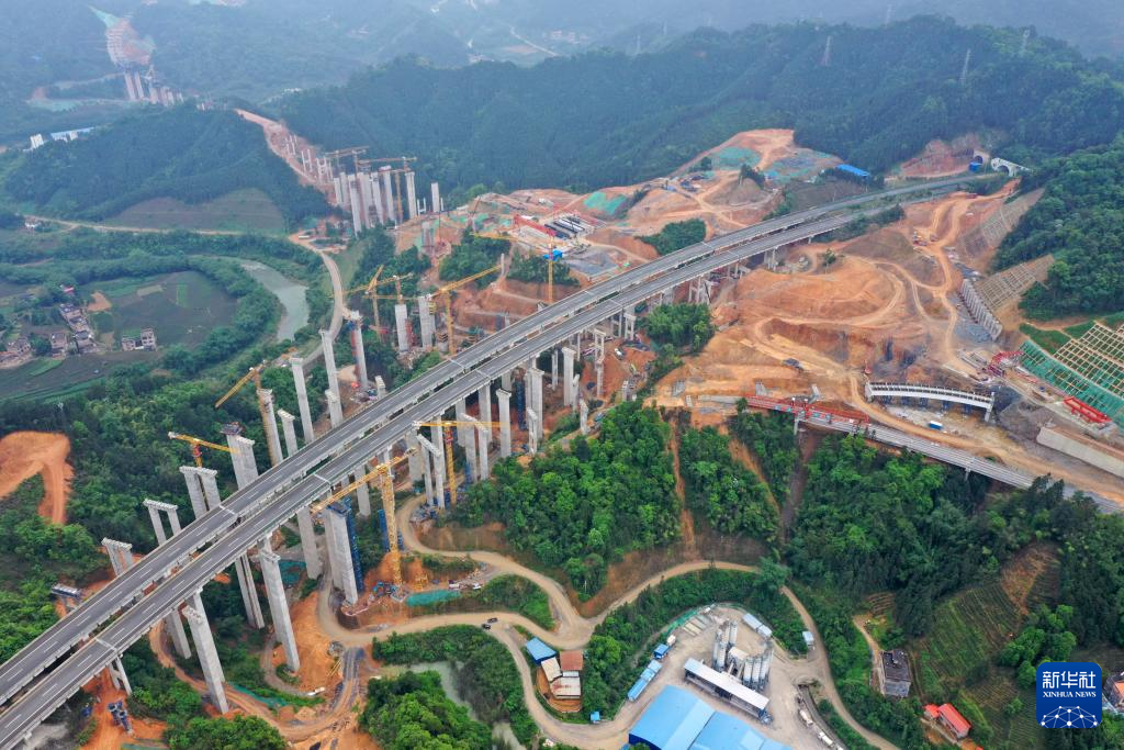 這是廣西昭平縣境內正在建設的蒼昭高速公路路段(4月25日攝,無人機照片)。