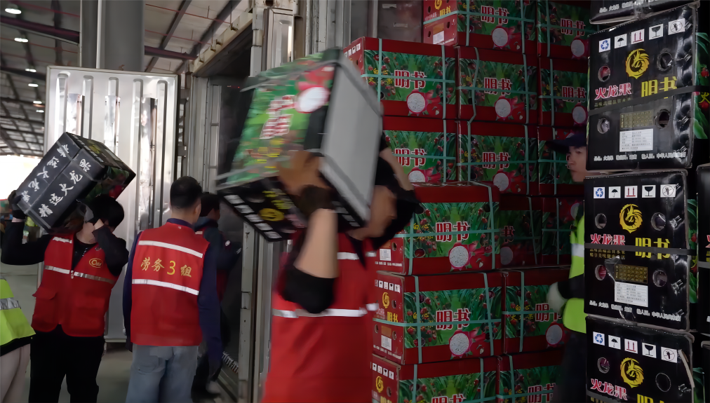 工人轉運從越南進口的火龍果。新華社記者農冠斌攝