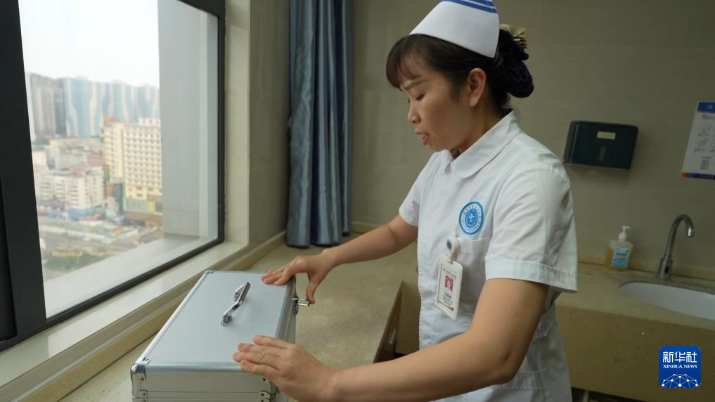 在廣西南寧市第二人民醫院19樓的胃腸外科,護士長蘇錦繡正在整理藥箱,為上門護理服務做準備。南寧市第二人民醫院在2021年8月啟動開展“互聯網+護理服務”試點工作,醫院周邊的居民通過官方小程序下單,即可預約上門護理服務。