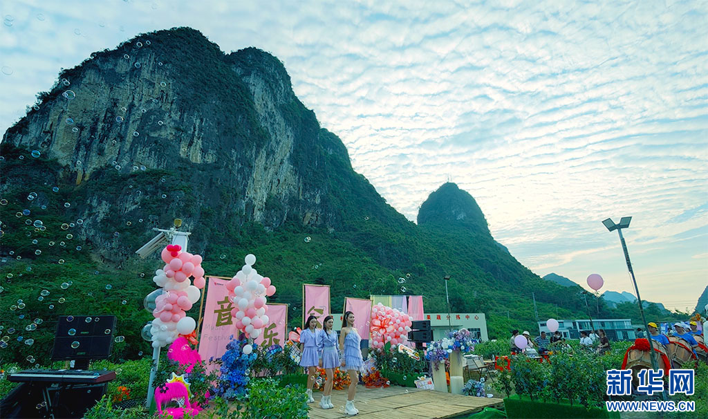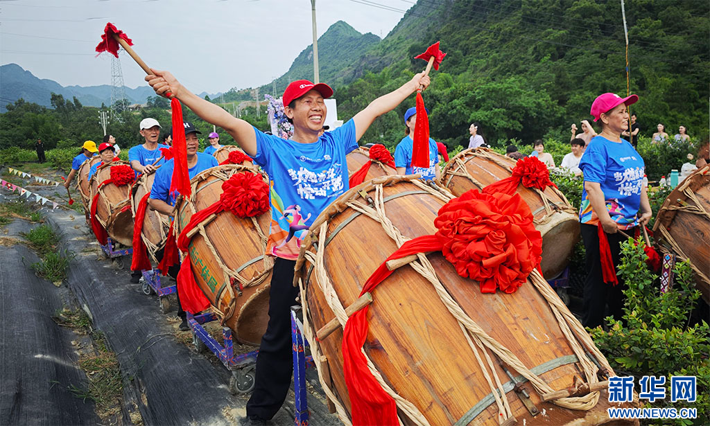 在活動現場,音樂愛好者們與當地壯鼓隊攜手共演,現代的音樂旋律和傳統的壯鼓,共同詮釋著群眾和游客對這片土地的熱愛與贊美,他們在歌聲中傾訴著對家鄉的思念,在鼓聲中傳達著對生活的熱情。