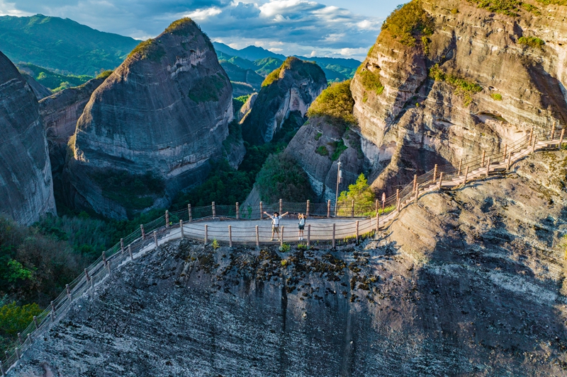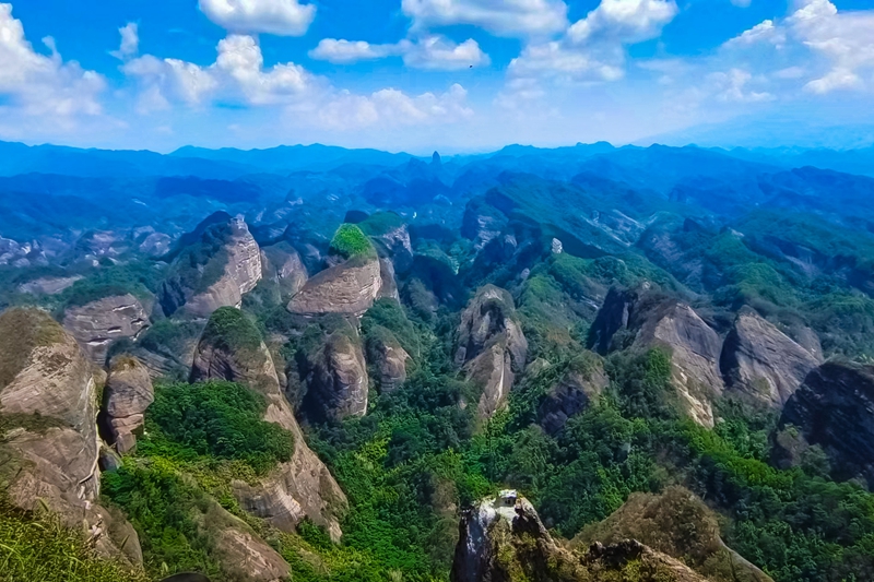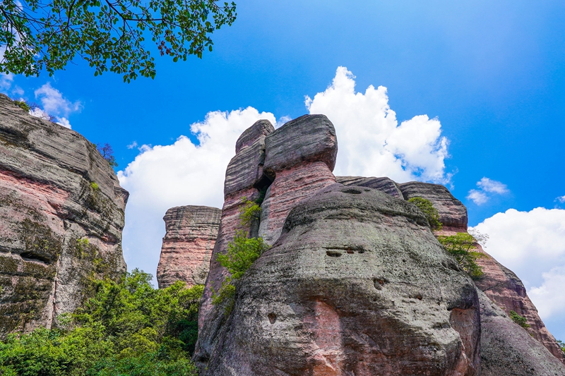 八角寨景觀資源天賦異稟,地質地貌鬼斧神工,其中以群螺觀天、龍脊天梯、凌淵谷、鯨魚鬧海等為絕勝,集黃山之奇、華山之險、桂林之秀于一身,是登山瞰丹霞風光的好去處。