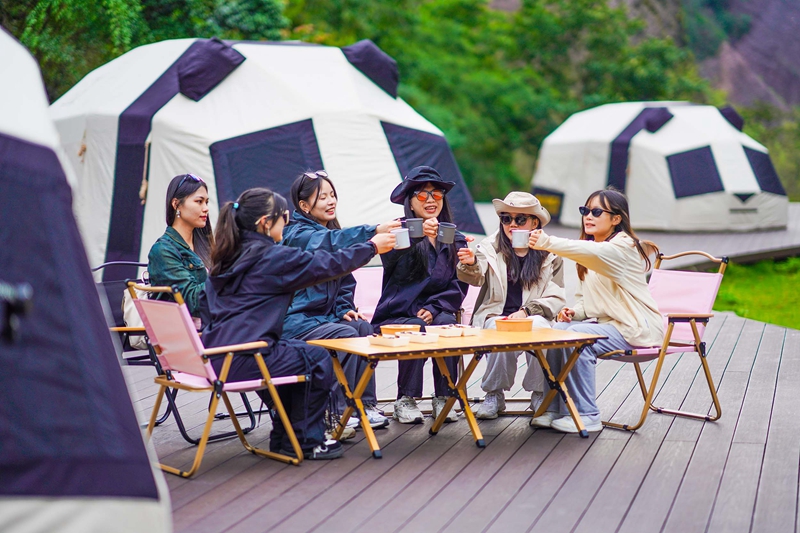 澗谷觀光露營主打青崖赤壁環抱的一方自然澗谷秘境,保留丹霞地貌最原始的壯觀氣景與自然野趣,同時可開展燒烤、帳篷露營、崖壁電影、燈光秀等戶外露營體驗活動,抬頭是浩瀚星河,閉眼是林間清風,每一口呼吸都是大自然的氣息。