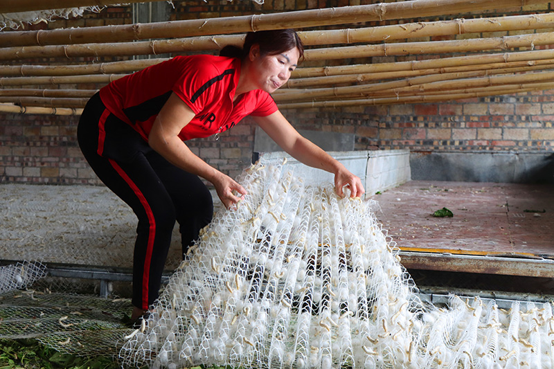 桑蠶產業是忻城縣最主要的支柱產業。近年來,忻城縣通過扶持農戶種桑養蠶、建立種養專業合作社、建設推廣現代化桑蠶產業示范基地、引進實施繭絲綢龍頭企業項目等舉措,實現從栽桑、養蠶、產繭到繅絲、生產絲綢面料一體化生產流程,讓一只小小的蠶蟲“破繭重生”。2023年,全縣桑園面積25.32萬畝,養蠶戶達7萬戶,全年發種量99.65萬張,鮮繭產量4.2484萬噸,產值23.6億元。(藍春青)