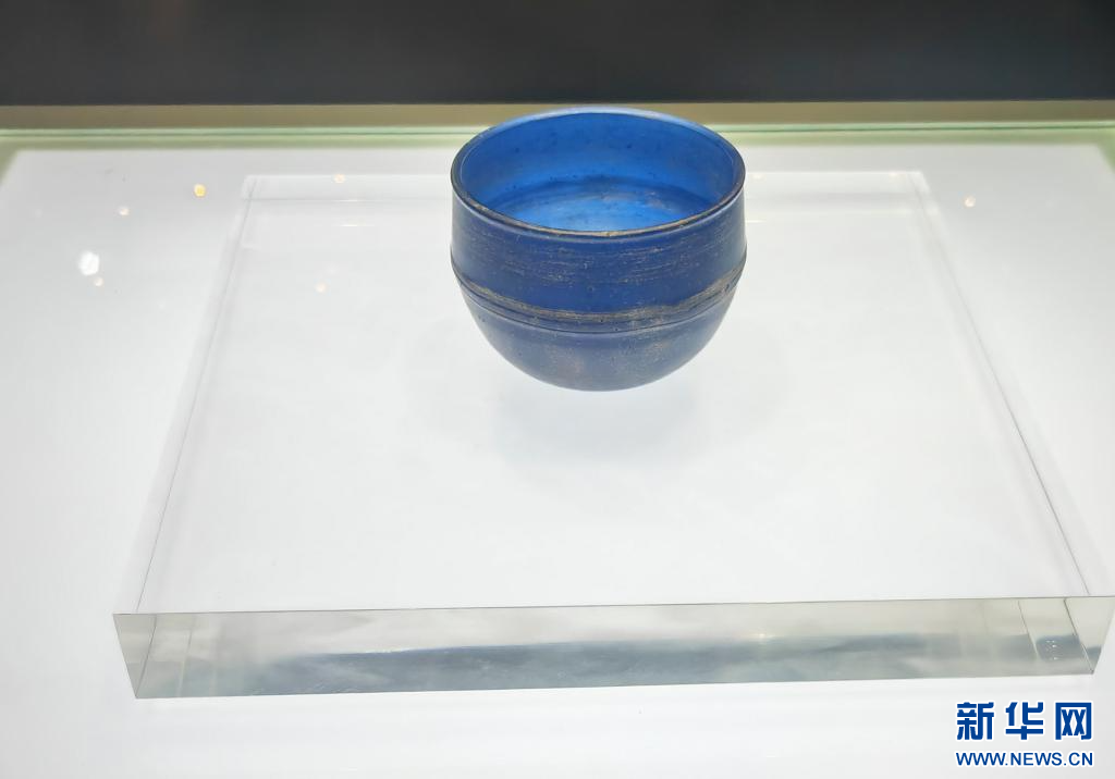 6月19日在廣西合浦漢代文化博物館展出的西漢晚期深藍色玻璃杯。新華社記者 黃浩銘 攝