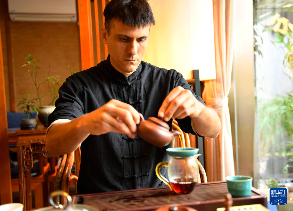 7月9日,莫小龍在南寧市一家茶館沏茶。新華社記者 金皓原 攝