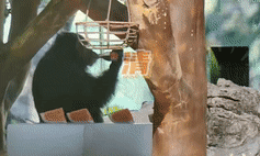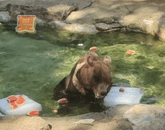 近日高溫天氣來襲。廣西南寧動物園飼養員為動物們準備了冰鎮西瓜等食物,還在休息區域放置冰塊,幫助它們防暑降溫。泡冰浴的棕熊、一口吃掉半個西瓜的河馬……請欣賞!夏日限定動物降暑“表情包”。