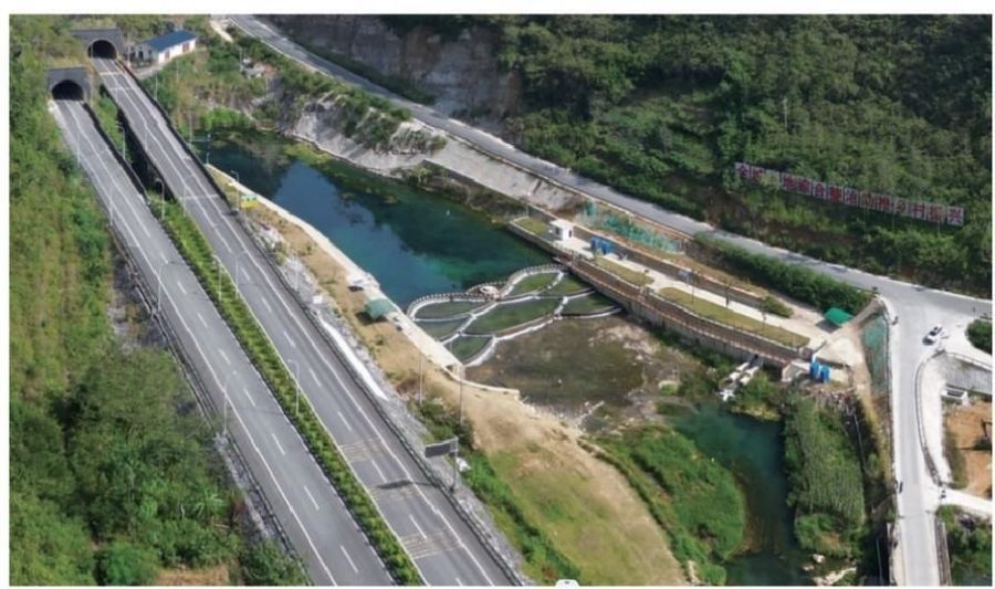河池市都安瑤族自治縣永仁村九磨河疊水式攔水壩景觀(河池市自然資源局供圖)