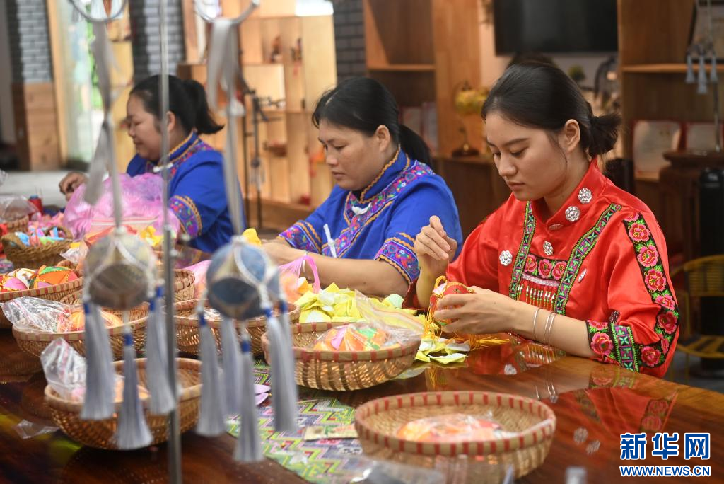 近些年,靖西市致力于傳承發展壯族繡球制作技藝,通過政策和資金扶持將舊州街建成自治區級非物質文化遺產產業示范基地,形成了“舊州繡球一條街”?!巴ㄟ^文旅融合發展帶動群眾增收,今年1月到8月中旬,舊州接待游客數量超19萬人次,旅游收入285萬元,繡球真的‘繡’出了致富路?!毙戮告傸h委副書記張翠璧說。