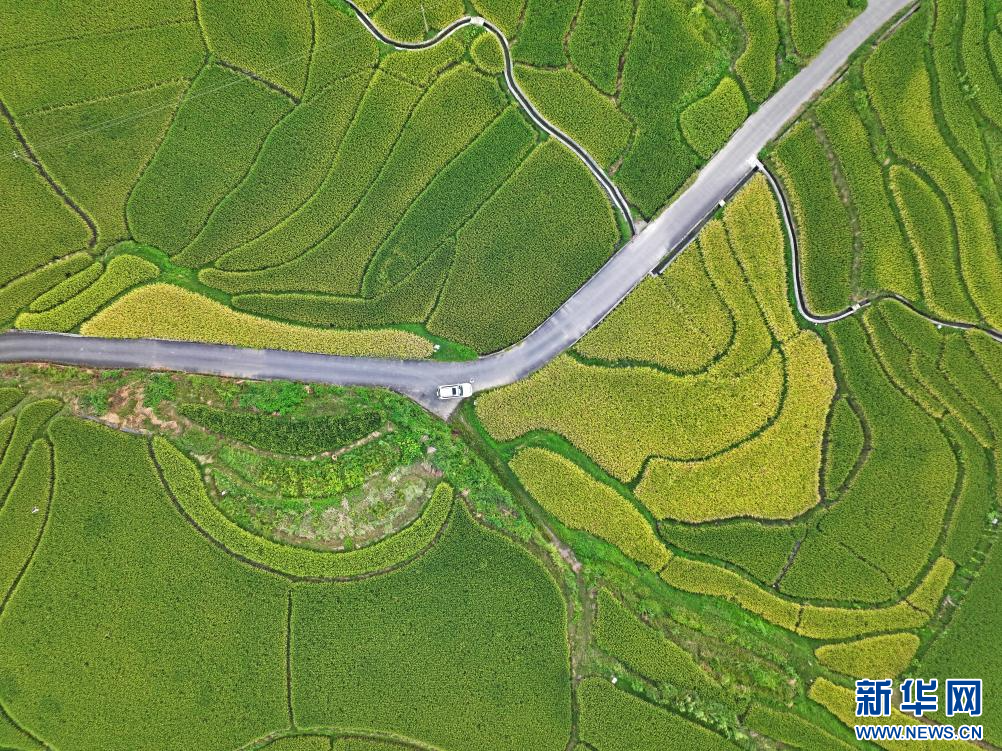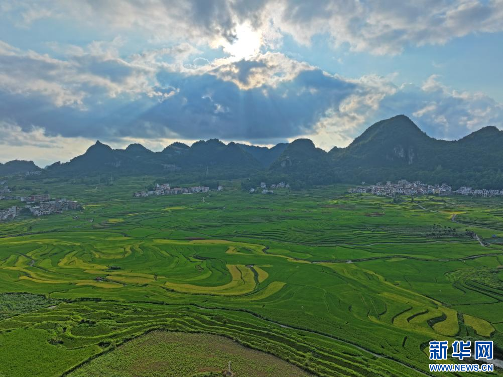 時下正是廣西河池市南丹縣芒場鎮巴平村水稻灌漿期,豐收在望的田園色彩斑斕,美不勝收。