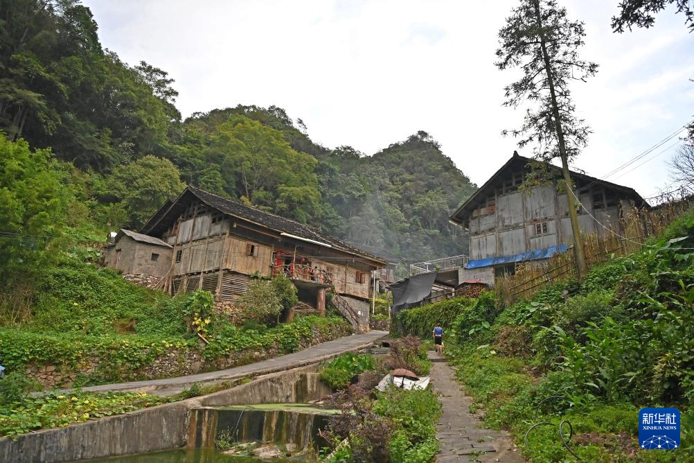 在廣西河池市南丹縣里湖瑤族鄉八雅村巴哈屯,一名孩子走出家門(8月28日攝)。