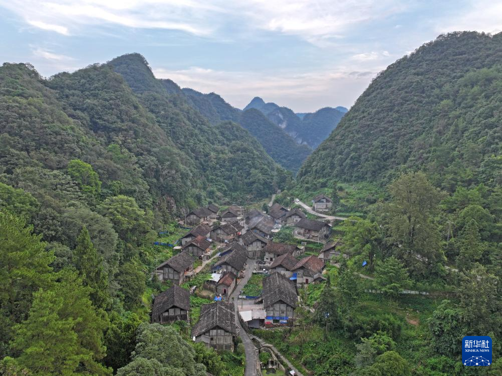 這是藏在大山深處的廣西河池市南丹縣里湖瑤族鄉八雅村巴哈屯(8月28日攝,無人機照片)。