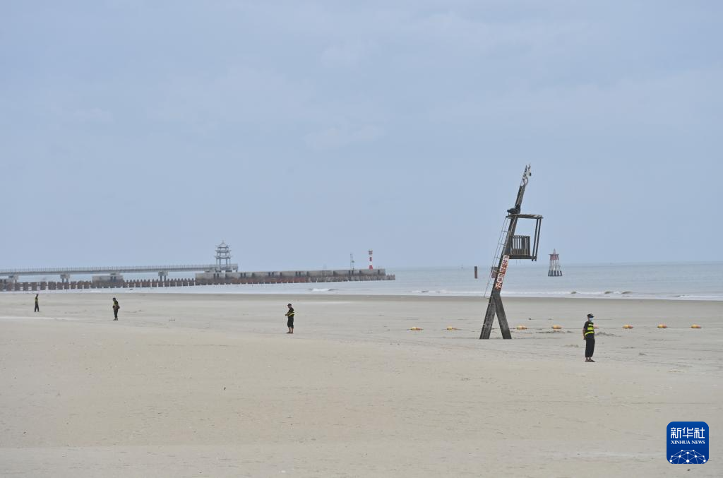 9月6日,在廣西北海市僑港海灘,工作人員在巡邏。