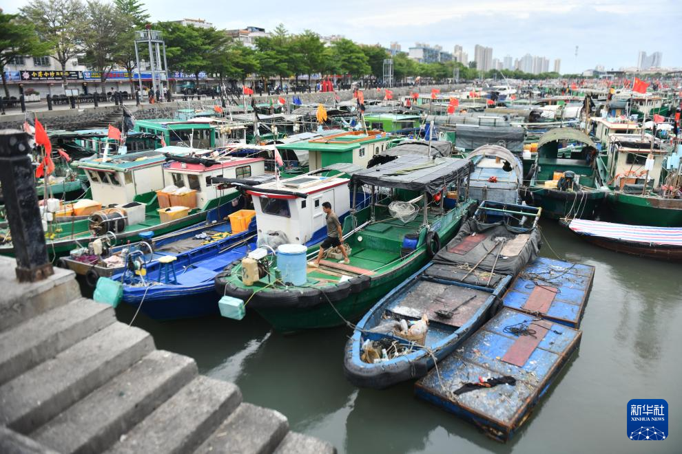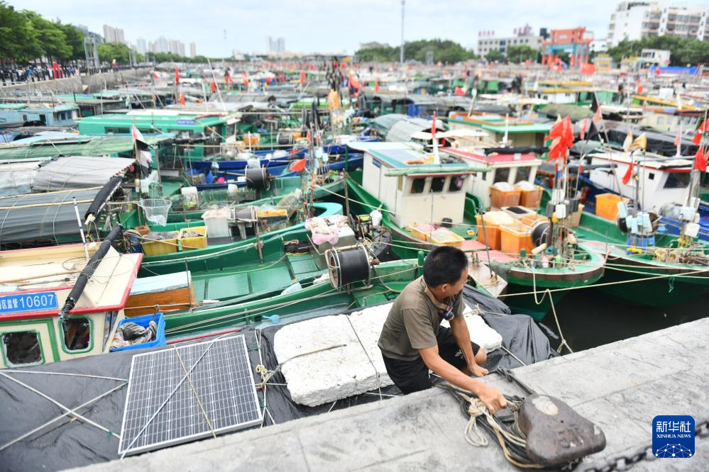 9月6日,在廣西北海市僑港鎮電建漁港碼頭,漁民準備撤離上岸。