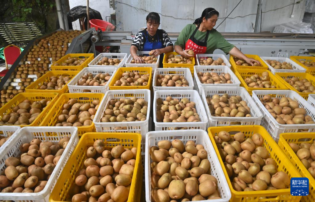 9月11日,村民在廣西南丹縣城關鎮關上村分揀獼猴桃。