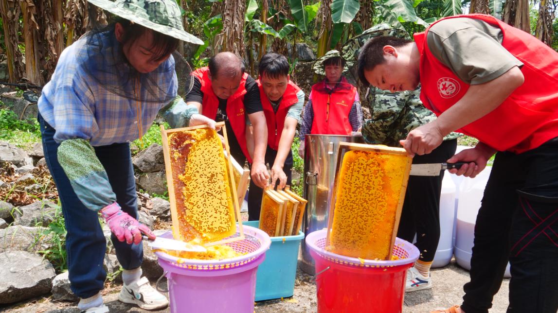 2023年,遂意鄉依托得天獨厚的生態資源和豐富多樣的蜜源植物,爭取到中央財政銜接推進鄉村振興補助資金44.88萬元,實施遂意鄉野蜂蜜加工扶貧車間項目,創建了養殖蜜蜂的“天然蜜場”,大力發展大石山蜂蜜產業,實現生態保護恢復、村集體經濟壯大、群眾增收致富,走出一條可持續發展、能增收的路子。