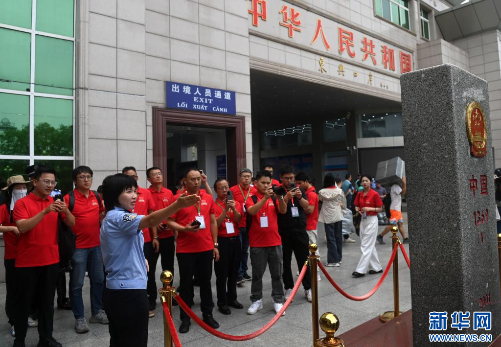 9月23日,巡訪活動參加人員在廣西東興口岸界碑前聽取有關情況介紹。新華社記者 陸波岸 攝