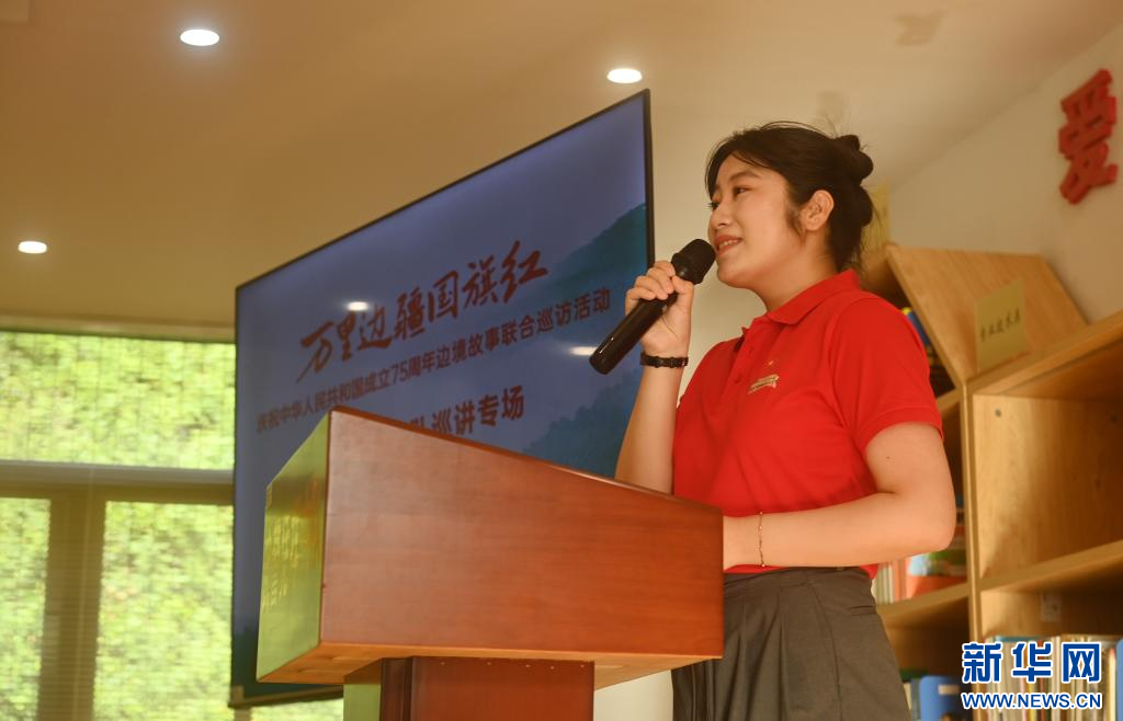 9月23日,在廣西東興邊境派出所,來自廣西桂林紅軍長征湘江戰役文化保護傳承中心的韋瑤在進行巡講。新華社記者 陸波岸 攝