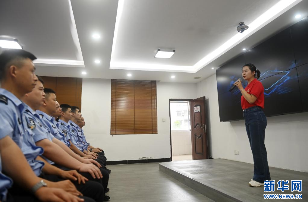 9月23日,在廣西東興邊境派出所,來自云南省楚雄州融媒中心的周永燕在進行巡講。新華社記者 陸波岸 攝