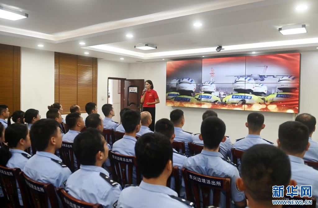 9月23日,在廣西東興邊境派出所,黑龍江省大興安嶺地區漠河市北極邊境派出所民警史先強在進行巡講。新華社記者 陸波岸 攝