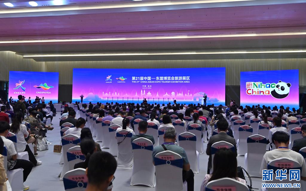 當日,第21屆中國—東盟博覽會旅游展區在廣西桂林國際會展中心開幕。本屆旅游展區以“加深文旅交融,共建‘一帶一路’”為主題,展覽總面積6萬平方米,共吸引43個國家和地區的旅游部門及企業參加。
