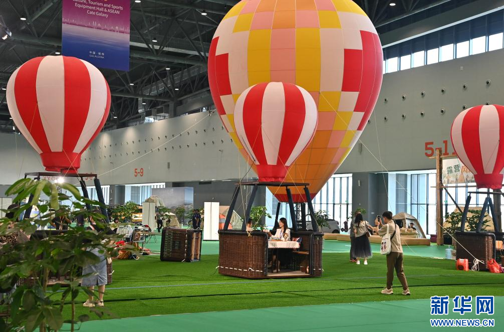 9月26日,觀眾在第21屆中國—東盟博覽會旅游展區體驗熱氣球。