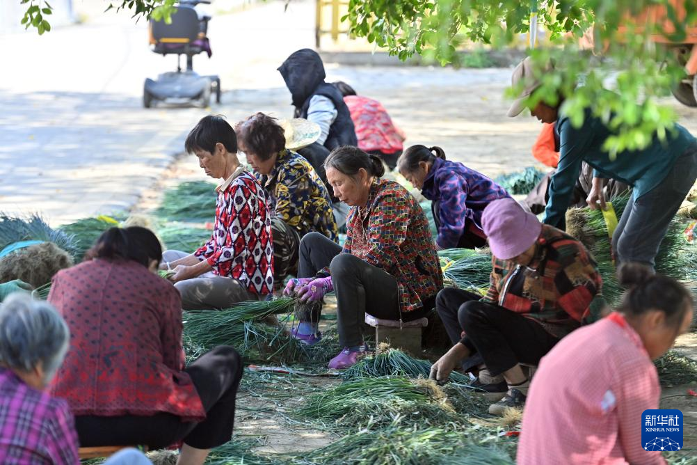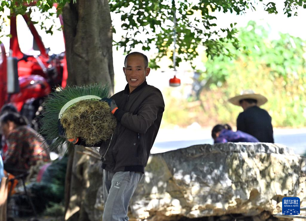 在柳州市柳江區三都鎮覺山村,村民在挑選香蔥(10月6日攝)。