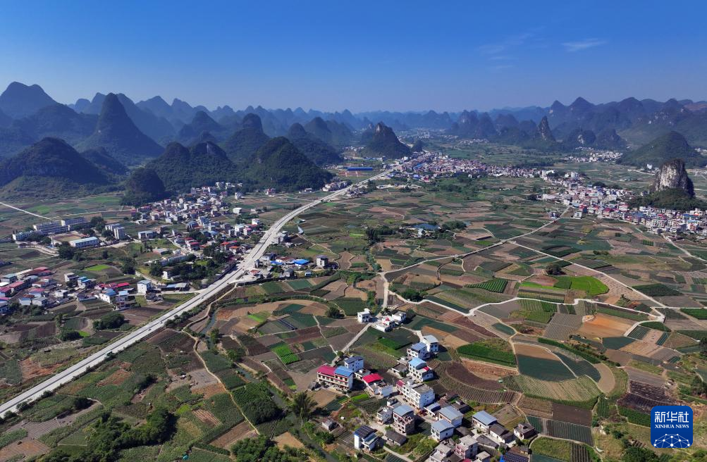 這是柳江區萬畝香蔥產業核心示范基地(無人機照片,10月6日攝)。